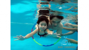 น้องมารีน คลาส Nemo วัย 1.2 ปี แห่ง BABY SWIMMING บางแสน กำลังฝึกการลอยตัวในน้ำ