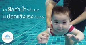 ปอดเล็กๆ ของเจ้าตัวจิ๋วคืออวัยวะสำคัญของระบบหายใจที่จะทำหน้าที่ลำเลียงออกซิเจนเข้าและนำคาร์บอนไดออกไซด์ออกจากร่างกายของลูกน้อยนะคะ ซึ่งหากปอดจิ๋วๆ ของลูกรักแข็งแรงระบบร่างกายส่วนอื่นๆ ของเขาก็จะดีตามไปด้วย ดังนั้น เราจะนำคุณพ่อคุณแม่มาช่วยกันฝึกลูกน้อยดำน้ำเพื่อ ‘เก็บลม’ ให้ปอดแข็งแรงและมีพลังเพียงพอในการต่อยอดสู่ความสามารถในการว่ายน้ำและเรียนรู้ทักษะการเอาตัวรอดทางน้ำกันค่ะ… มาลุยกันเลย สนุกดำน้ำเพิ่มพลังปอดกิจกรรมดำน้ำที่แสนสนุกเพื่อฝึกทักษะการเอาตัวรอดจากการจมน้ำและเสริมสร้างความแข็งแรงของปอดให้เจ้าตัวเล็กนั้น หากไม่แน่ใจว่าสามารถฝึกลูกด้วยตัวเองได้ แนะนำให้คุณพ่อคุณแม่พาลูกรักไปรับการฝึกที่สระว่ายน้ำสำหรับเด็กเล็กโดยเฉพาะดีที่สุดนะคะโดยต้องเลือกสระที่ได้รับการรับรองตามมาตรฐานสากลทั้งด้านการจัดการ ระบบของสระ และครูฝึก...
