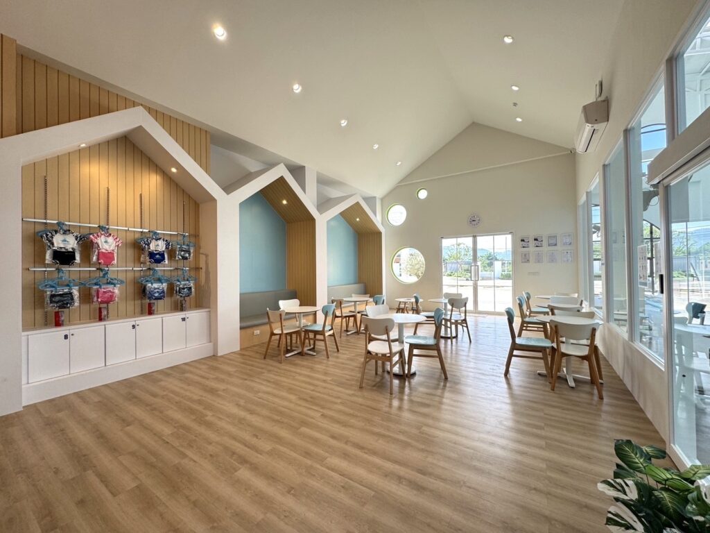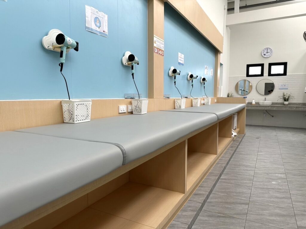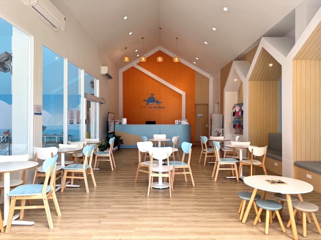 ที่เราตั้งใจออกแบบอย่างพิถีพิถันในทุกๆ จุดเพื่อให้เหมาะกับน้องๆ สมาชิกวัย 4 เดือน-12 ปี โดยเฉพาะ ไม่ว่าจะเป็นลานจอดรถ ล็อบบี้ ห้องอาบน้ำ ห้องสุขา สระว่ายน้ำ รวมไปถึง Cafe ในบรรยากาศสบายๆ ที่คุณพ่อคุณแม่สามารถนั่งจิบกาแฟหรือเครื่องดื่มและดูน้องเรียนว่ายน้ำไปพร้อมๆ กันได้เลย