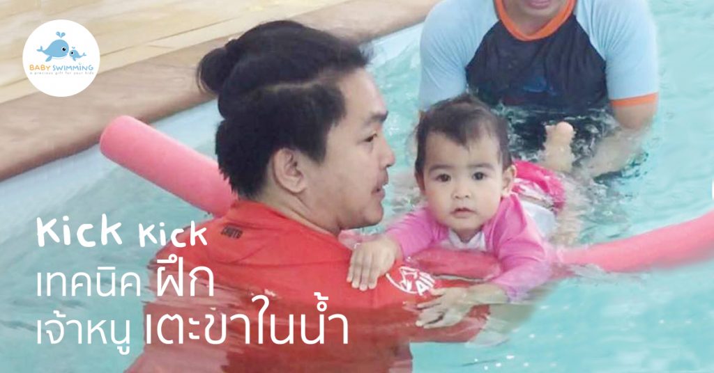 การฝึกเตะขาจะช่วยให้เจ้าตัวเล็กได้ทำความคุ้นเคยกับน้ำ รวมทั้งได้รู้จักวิธีที่จะขยับขาทั้งสองข้างขึ้นลงสลับกันเพื่อการเคลื่อนที่ไปด้านหน้า หรือเคลื่อนที่ไปยังเป้าหมายที่กำหนด ซึ่งในอนาคตหากเกิดเหตุฉุกเฉินลูกน้อยจะสามารถเคลื่อนที่ในน้ำไปยังเป้าหมายหรือที่ปลอดภัยได้นั่นเองค่ะ แต่อย่าลืมนะคะว่าระหว่างการฝึกเจ้าตัวเล็กต้องได้รับการดูแลอย่างใกล้ชิดจากครูฝึกและคุณพ่อคุณแม่ด้วย